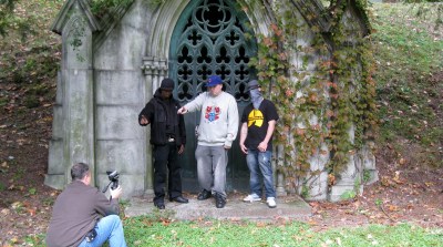 Being that this is Sicarii’s first official video, I wanted to give you a little sneak peek at what it was like behind the camera at the shoot. Sic had picked several different locations for the shoot but with last Wednesday being the first day of shooting and us having only a few hours to work with, we only got to shoot at two of the locations. One of which was the Springfield Cemetery. We found some great imagery for the video and even bumped into some wonderful gentlemen who actually let us use their hearse to shoot some scenes in. Most people might be creeped out at the thought of sitting in a hearse, but not my boy Sic. He jumped at the chance…
