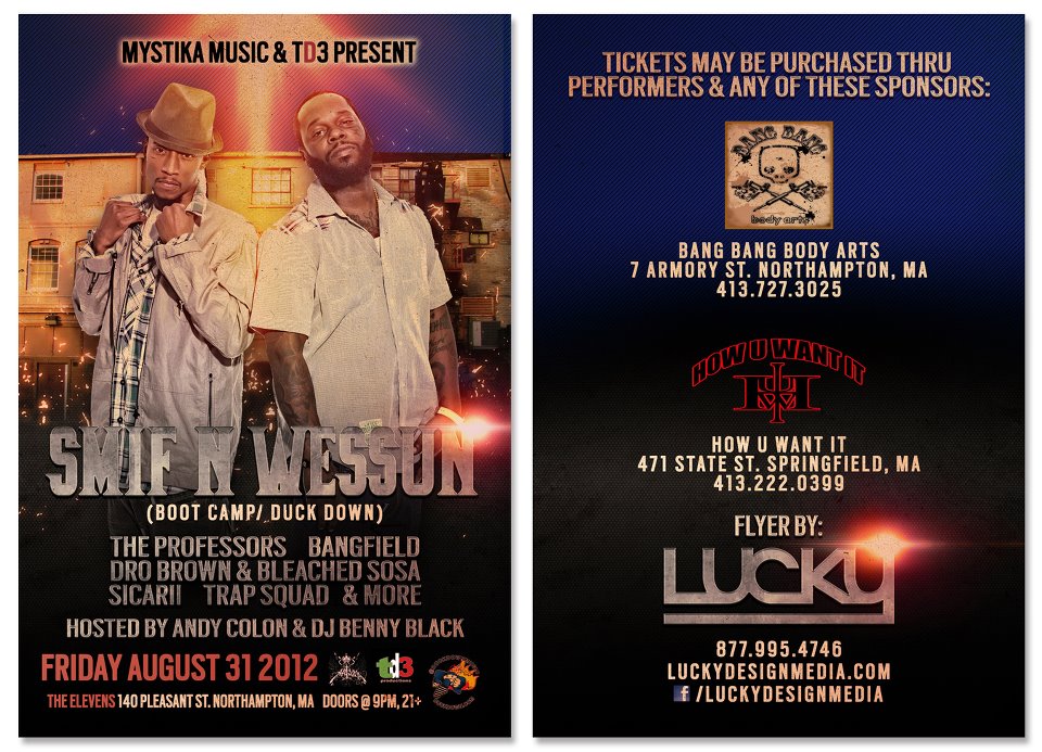 Coming on Friday August 31st… Mystika Music and TD3 proudly bring to you Smiff -n- Wessun of the legendary Boot Camp Clik! This show is definitely going to be one for the history books, with special guest appearances by Frank White’s new group “Bangfield”, Sicarii, The Professors, Trap Squad, Dro Brown & Bleached Sosa and lots more! You won’t want to miss this. This is a 21+ event so bring an ID and please drive responsibly after the show! Come out and support real hip hop.